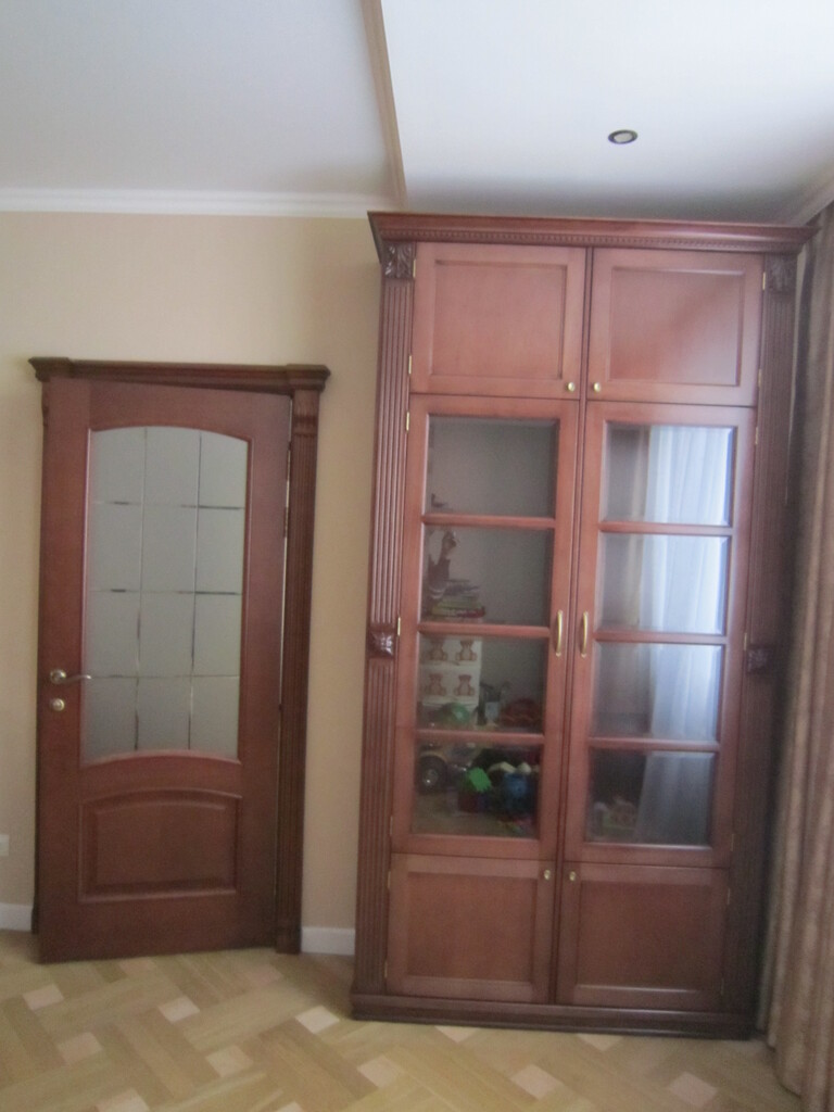 В данном проекте книжные шкафы изготовлены по индивидуальному дизайну заказчика. Использовалась натуральная древесина-массив Анегри. Анегри –это тропическое дерево, древесина которого, за счет своего внешнего вида, является очень популярной в изготовлении элитной мебели.